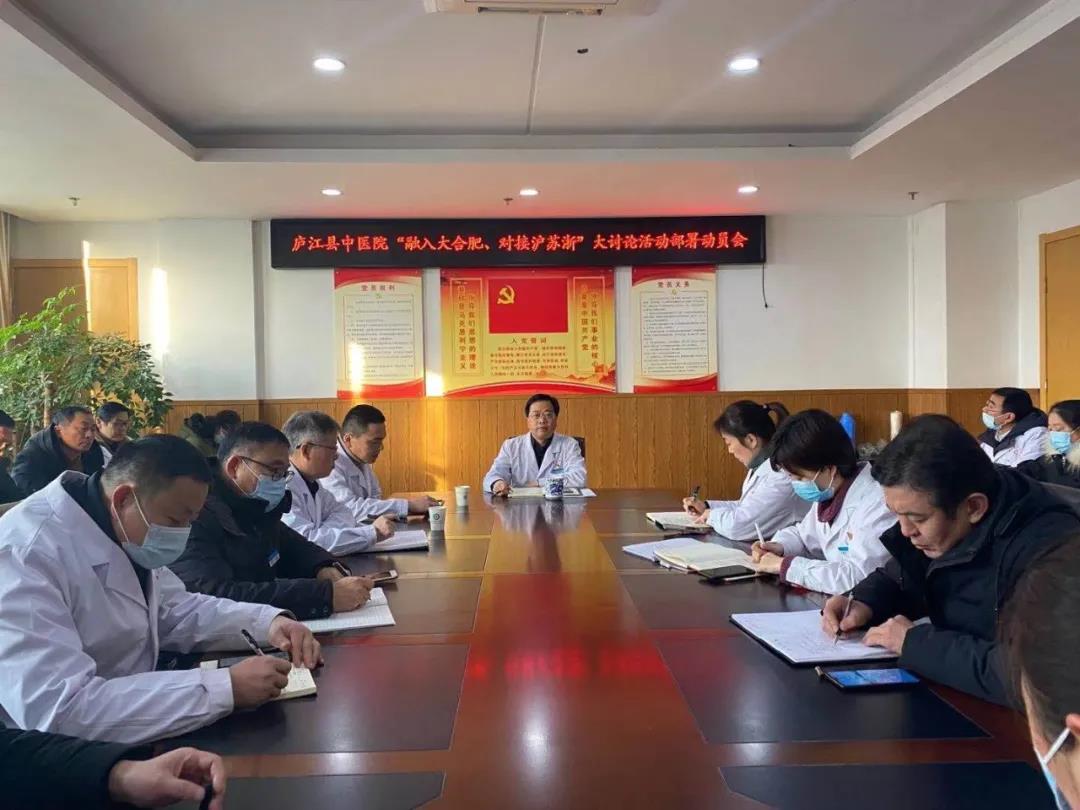 近日,我院召开“融入大合肥,对接沪苏浙”大讨论活动部署动员会,紧紧围绕县委县政府“十四五"战略规划,聚焦医院重点工作,扎实推进医院健康发展。
