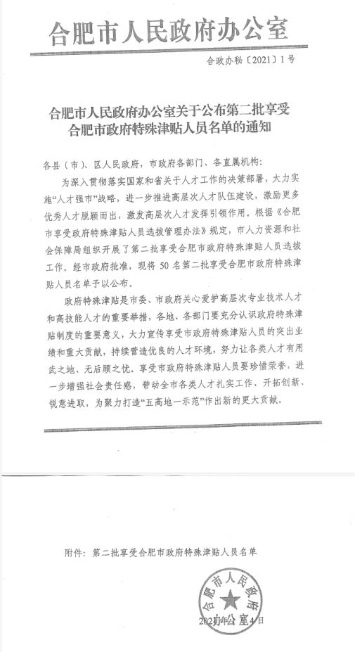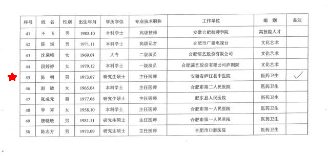 近日,合肥市人民政府办公室公布了2020年享受合肥市政府特殊津贴人员名单,经个人申报、单位推荐、专家评审、组织审定等程序,庐江县中医院党委书记、院长陈明荣获合肥市政府特殊津贴。