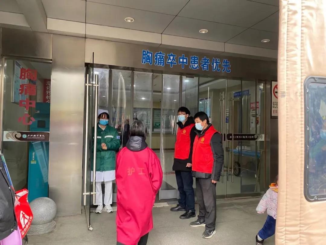 全院员工凝神聚力,响应号召,利用休息日,主动参与疫情防控志愿服务工作,还有一批大学生主动加入到中e人志愿服务队伍中来。经过岗前培训动员后,钱伯坤、潘峰、张雯韵、蒋悦琪等一批大学生利用休息时间,和中e人志愿者们一起在门诊、急诊出入口等地引导患者及家属扫描安康码、规范佩戴口罩、测量体温、做好入院登记、出示陪护证,认真维持秩序,疏导就诊人群,当起了大家的“指示牌”,为患者解难答疑,引导使用自助挂号、自助打印功能,协助导医人员做好就诊排号问题,确保一患一诊室制度执行。
