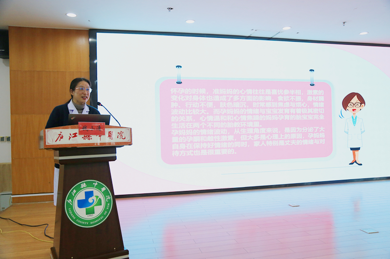 医院心理咨询专家钱小清授课,帮助准爸妈们认识孕期不良情绪的影响,教会孕产妇如何保持积极情绪的方法,呵护每一位孕产妈妈的身心健康。