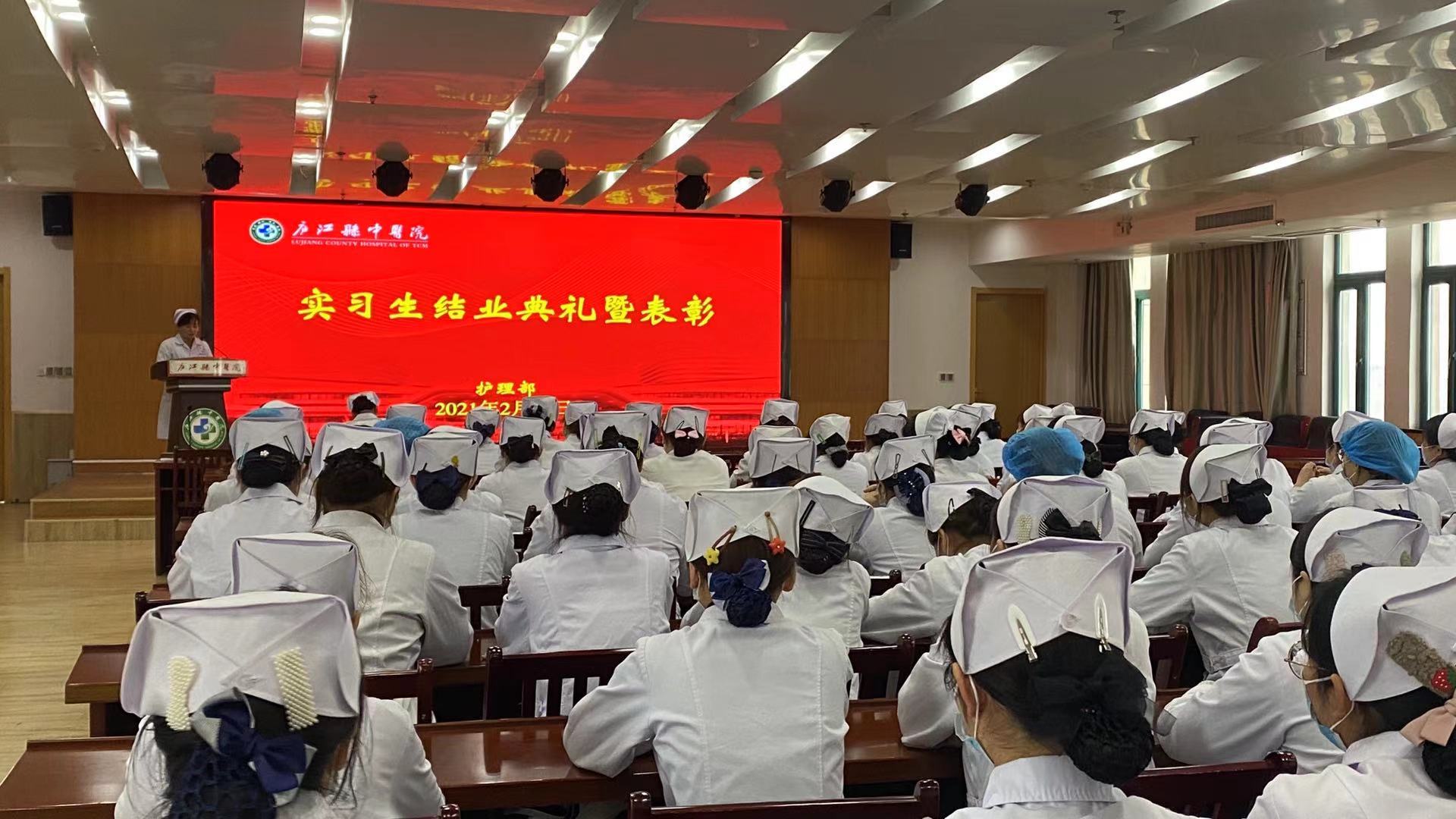 2月25日下午,庐江县中医院护理部组织召开了2020年度护理实习生结业典礼暨表彰会议,护理部主任潘玉荣、副主任王方苗出席会议,全体护理实习生共计70余人参加,会议由护理部副主任王方苗主持。