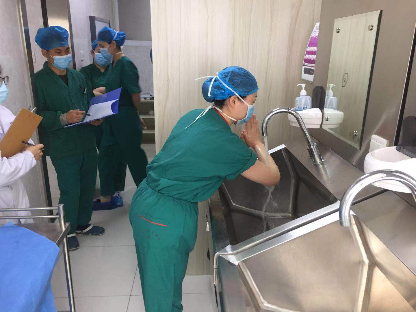 4月2日下午,由感控办、医务科、护理部、手术室、介入科等科室负责人现场打分,对医院感控督导员进行外科手消毒考核,择优选出3名督导员共同担任此次比赛评委。