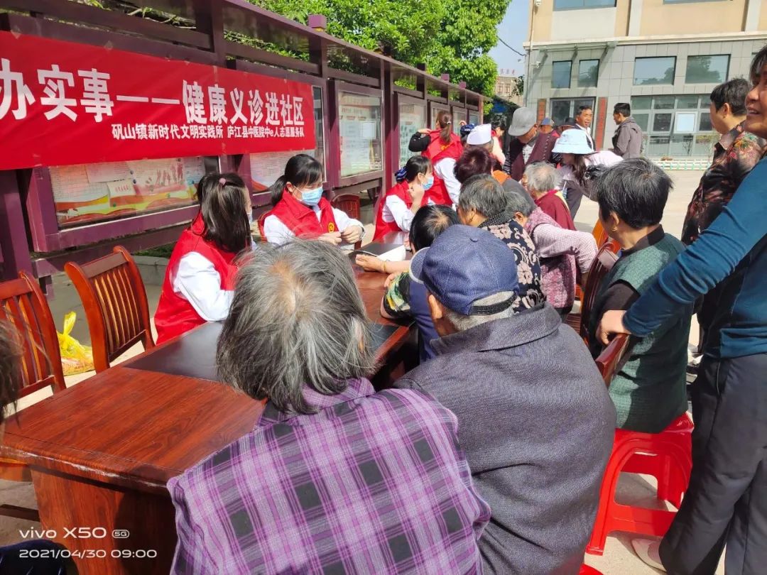 4月30日,庐江县中医院中e人志愿服务队走进矾山镇,开展了健康义诊进社区活动。