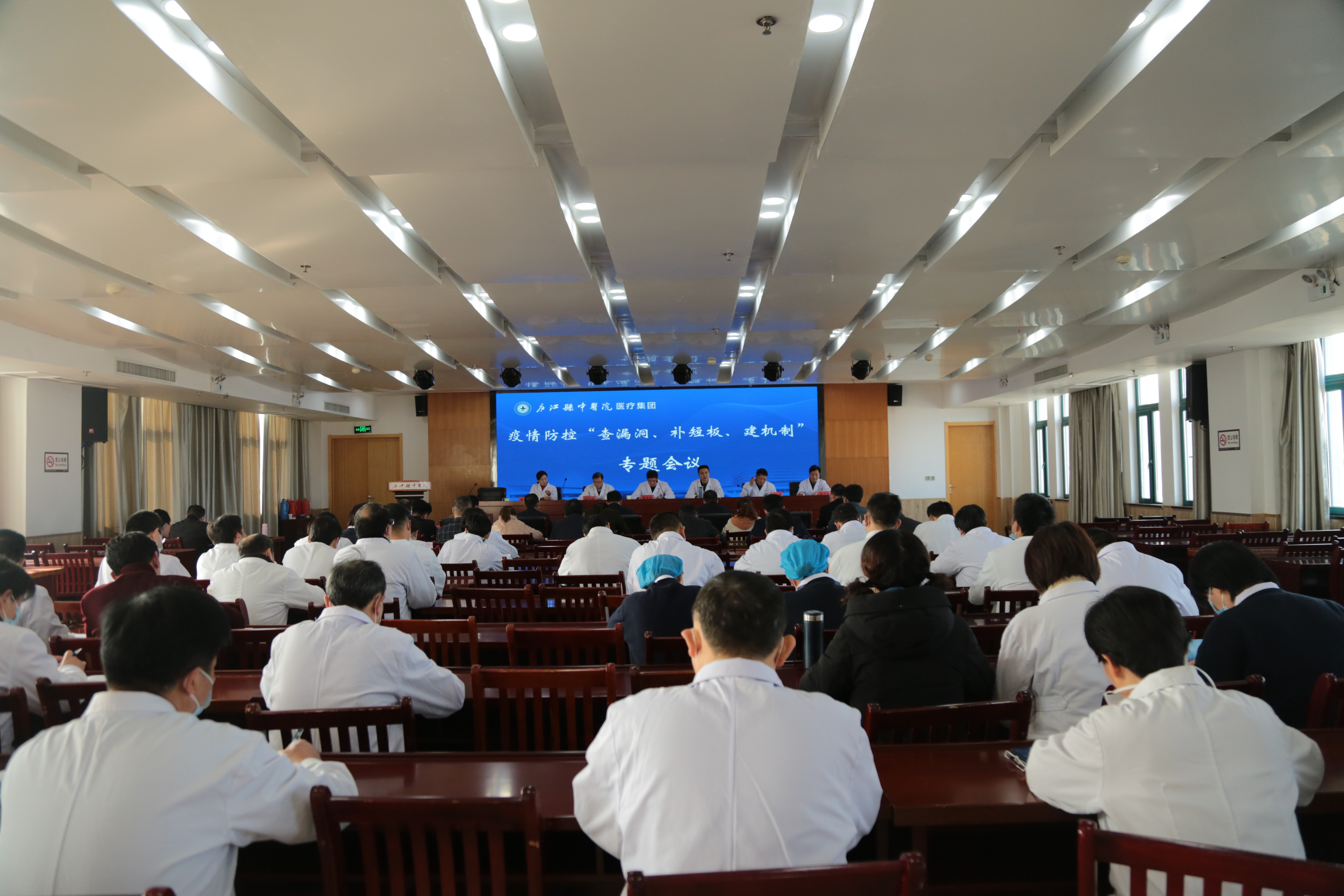 根据省、市、县疫情防控会议精神,为进一步完善集团疫情防控体系,构建长效机制,落实“查漏洞、补短板、建机制”的工作要求,12月13日下午,庐江县中医院医疗集团疫情防控“查漏洞、补短板、建机制”专题会议在第三会议室召开。集团院长董召斌主持会议,集团班子成员、疫情防控领导组成员、重点科室、重点部门负责人及分院执行院长、分管负责人、院感专职人员参会。