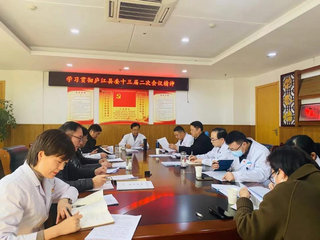 为贯彻落实县委十三届二次全会精神,12月20日下午,庐江县中医院党委组织召开第12期党委中心组理论学习,党委书记陈明主持会议,医院党委班子成员以及院务委员会成员,工会主席参加。