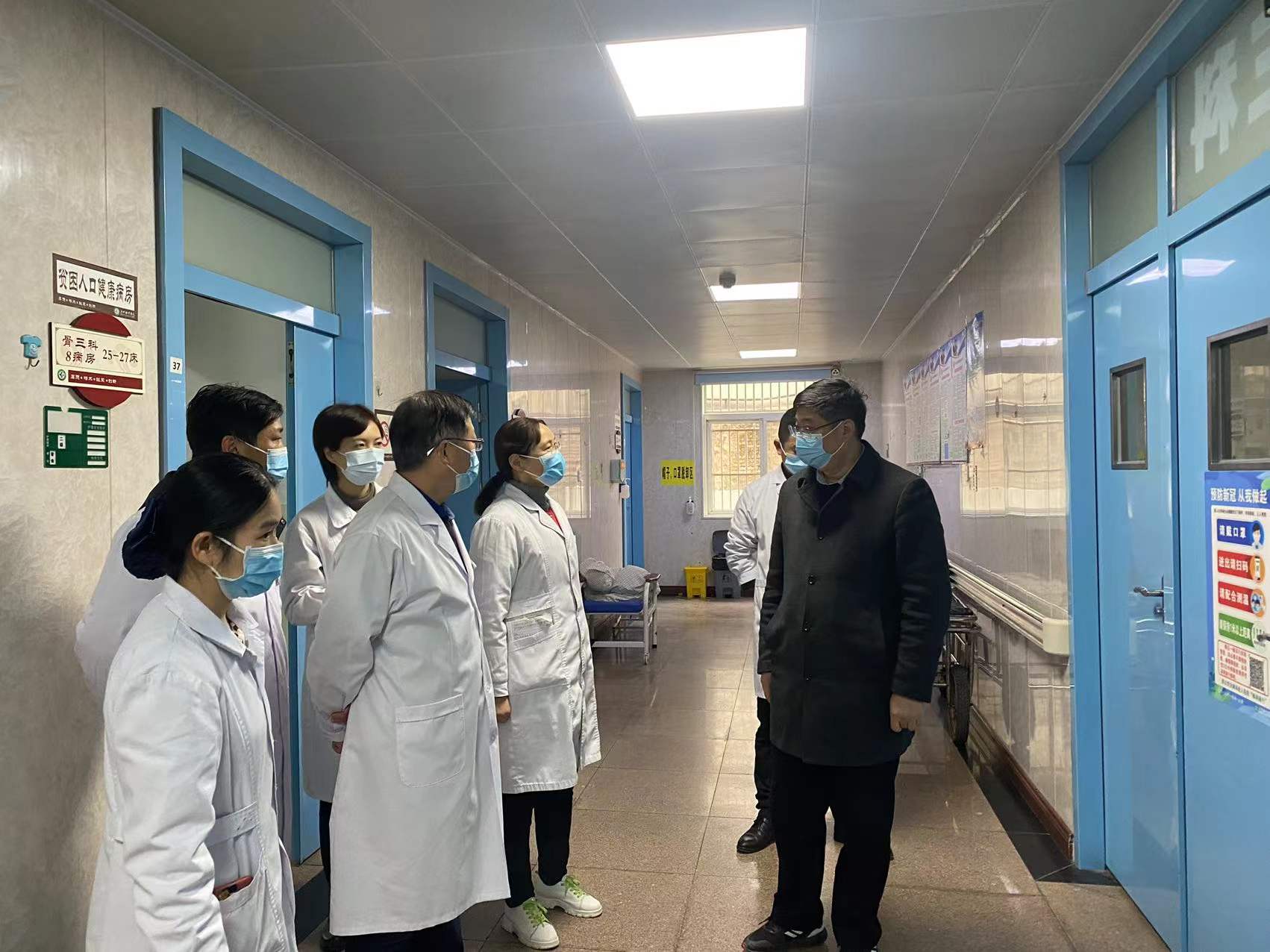 1月14日,庐江县中医院院长董召斌带队,副院长洪文格、纪委书记张子林及医务科、护理部、感控办等职能科室负责人在全院范围内开展疫情防控督查工作。