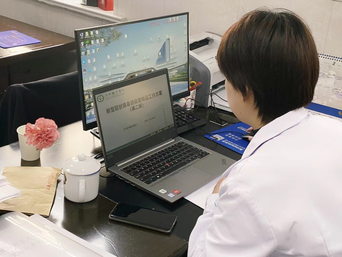 培训以线上钉钉直播方式进行,由院感控办主任卢睿敏授课,带领医护人员学习了《新型冠状病毒感染者转运工作方案(第二版)》《新冠病毒抗原检测应用方案(试行)》《医疗废物处置方法》《防护用品穿脱流程》等知识。