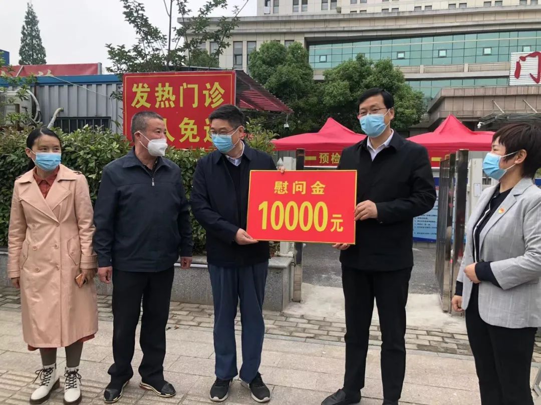 在国际劳动节来临之际,4月30日下午,县长周天斌、县总工会主席曹晓东等领导一行来我院看望慰问发热门诊以及疫情防控一线医护人员。县卫健委主任高慧玲、院长董召斌及班子成员等领导陪同参加。