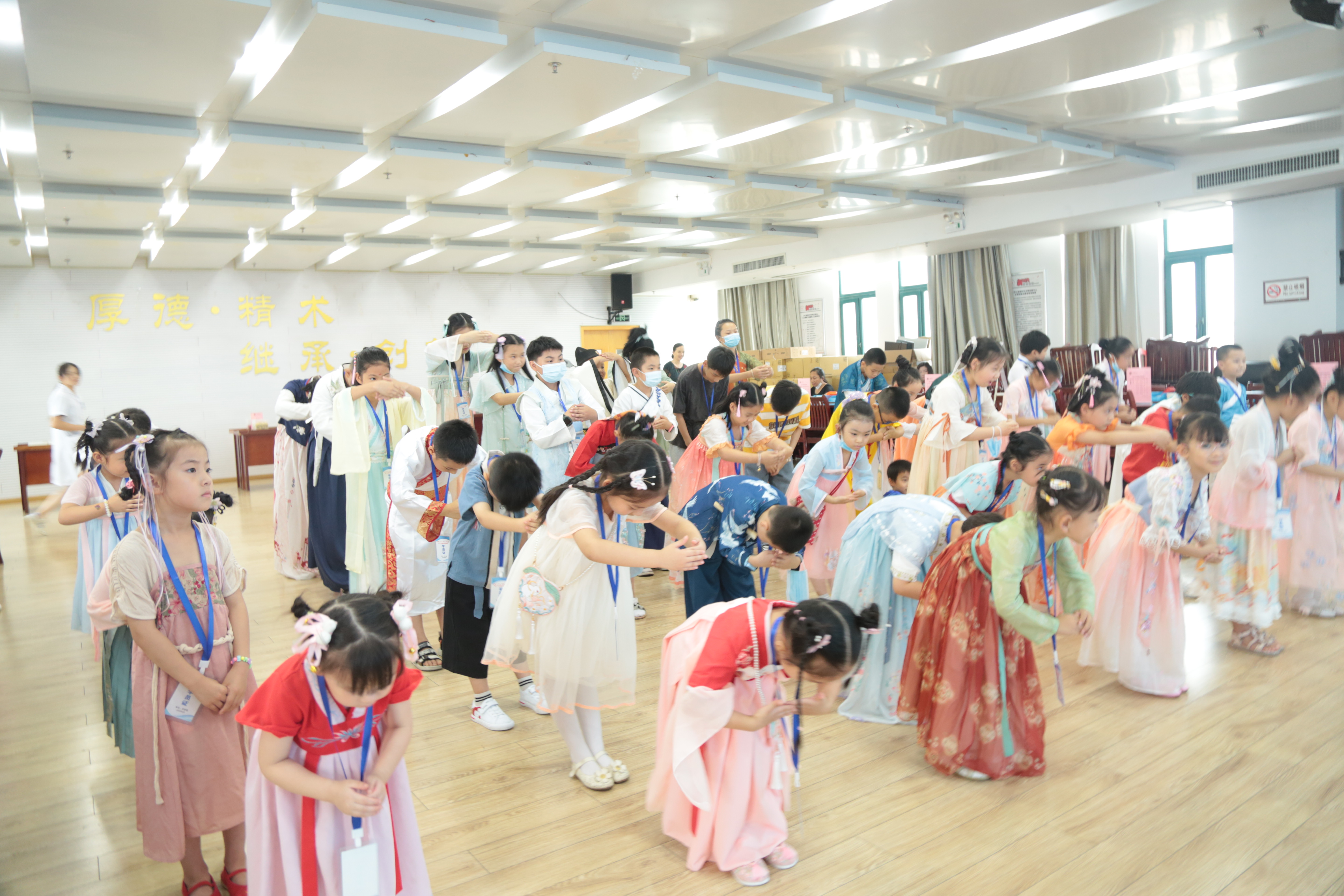 第四站,学习汉服礼仪。小中医人着汉服,作揖行礼,真真切切感受到了传统文化的魅力。