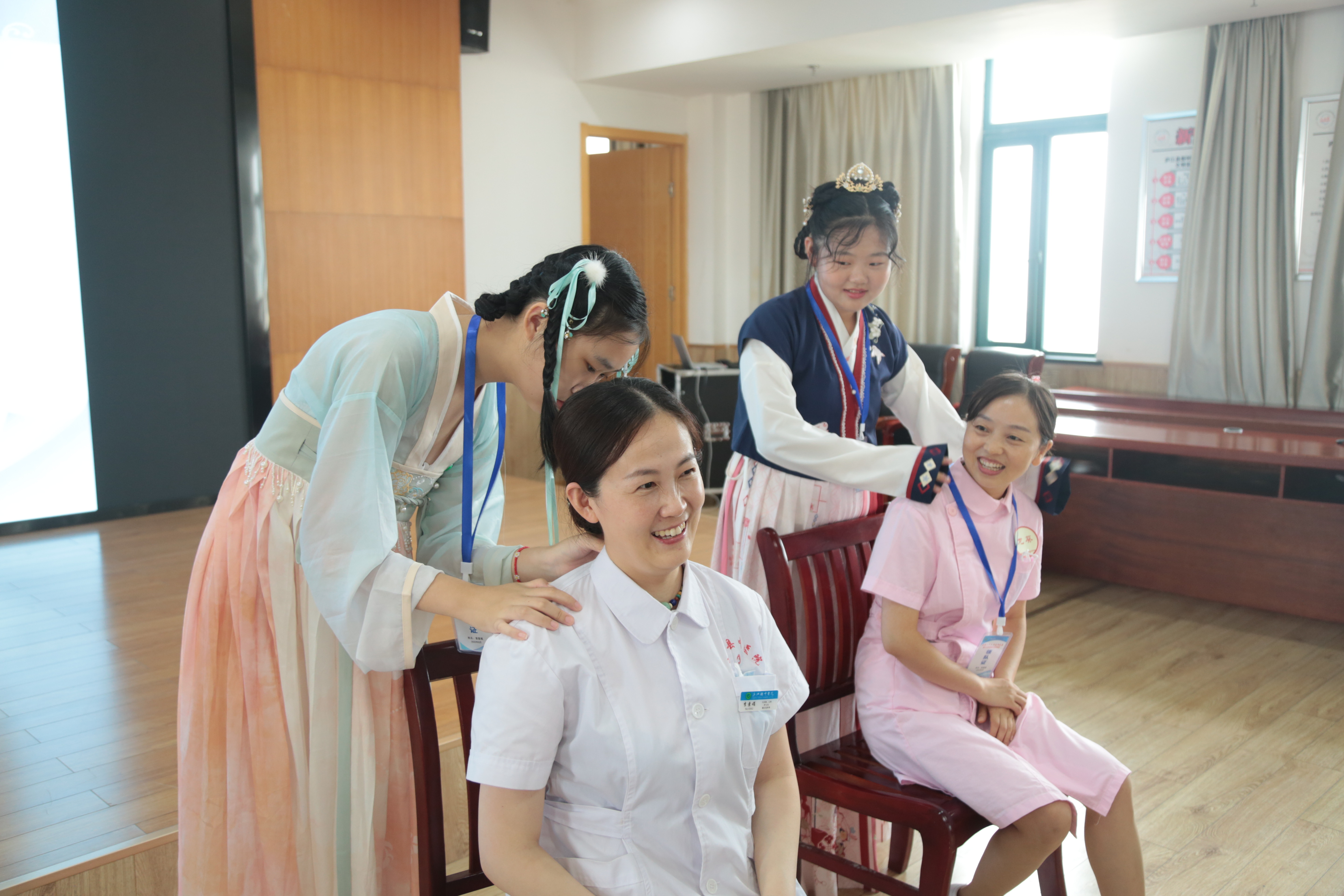 第二站,打卡中药房、中医特色疗法中心,感受中医药文化的魅力。在中药房,小中医人通过用鼻子闻、用眼睛看、用手触摸等方法感知中药材。工作人员还在现场展示了中药“神奇实验”,小中医人们连连称赞。