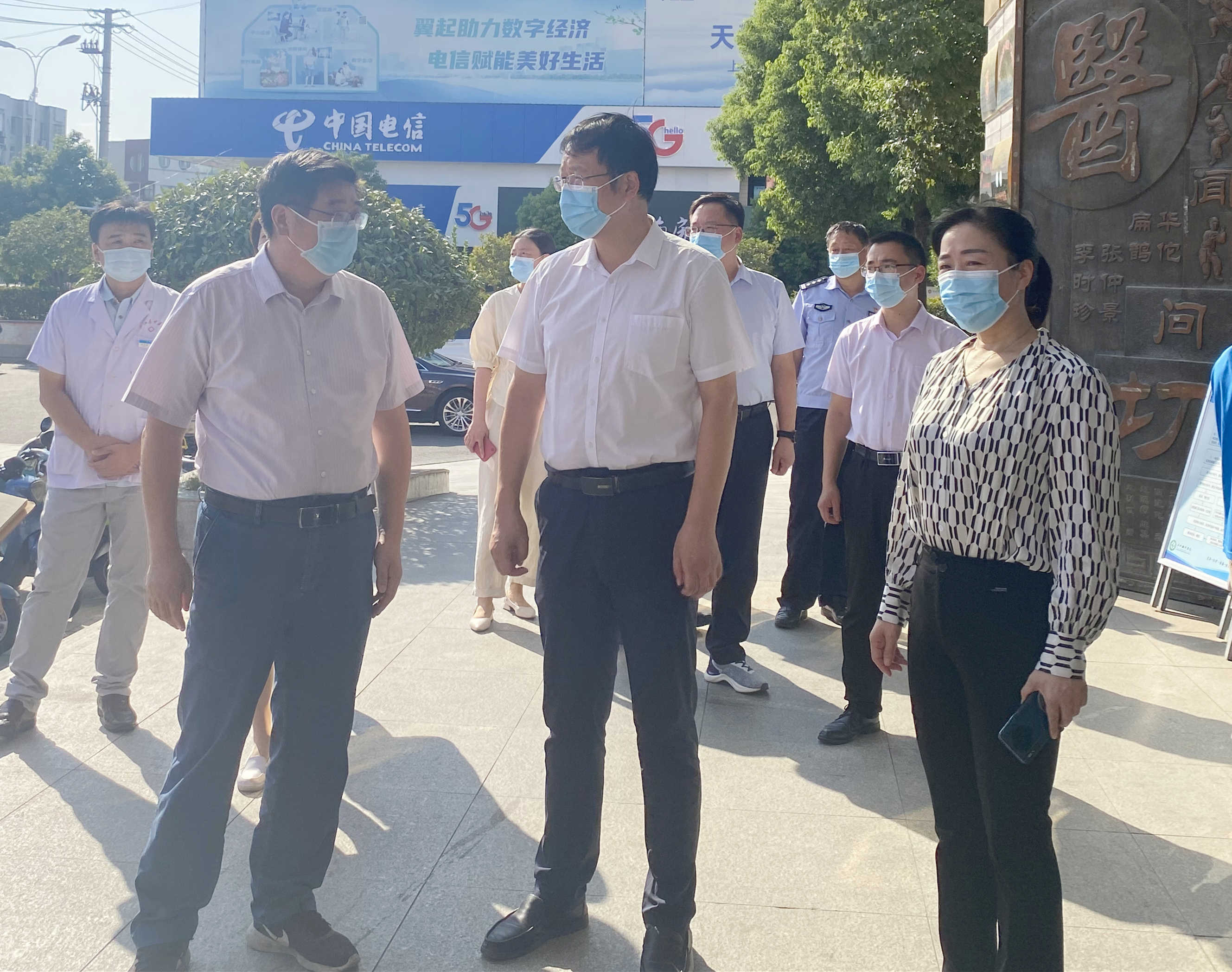 10月2日下午,县长周天斌等领导一行督查指导县中医院医疗集团国庆期间疫情防控工作,院党委书记董召斌及班子成员陪同。