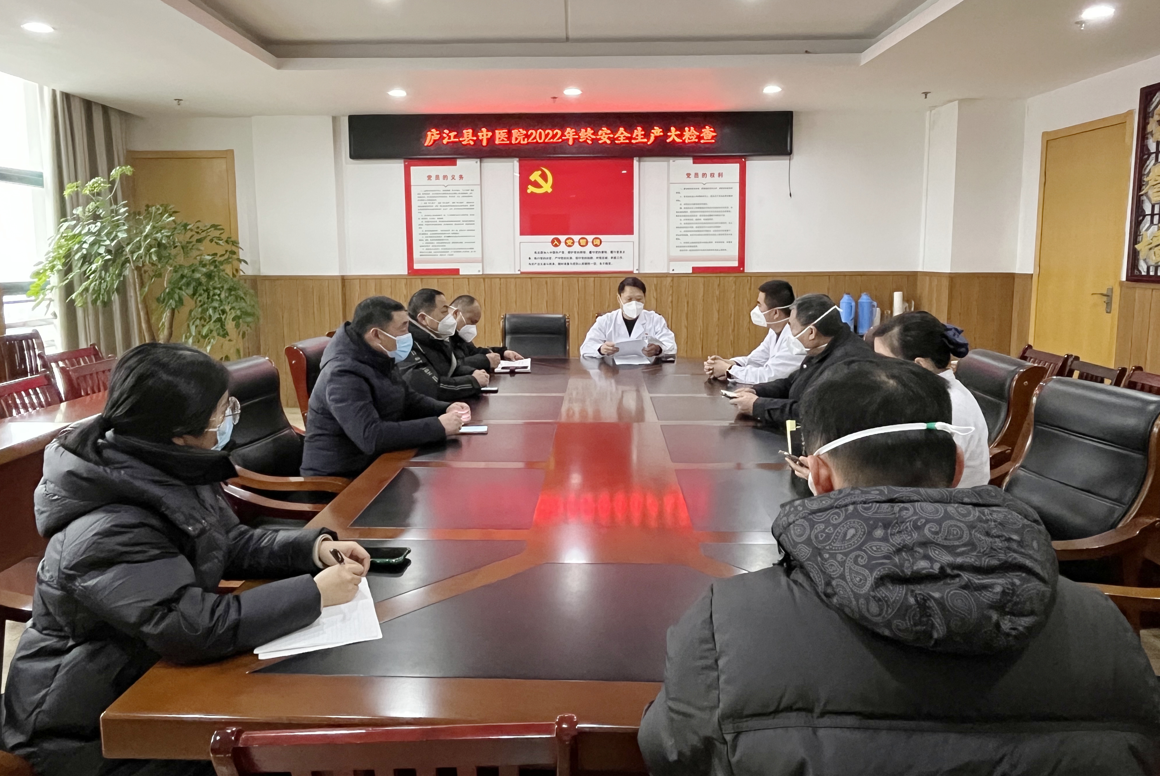 元旦、春节将至,为确保医疗工作平稳运行,筑牢安全生产防线,12月28日下午,庐江县中医院召开安全生产大检查专题会议,分管院长杨旭东及后勤保障部、医务科、护理部、药学部、医学装备科等相关科室负责人参加。