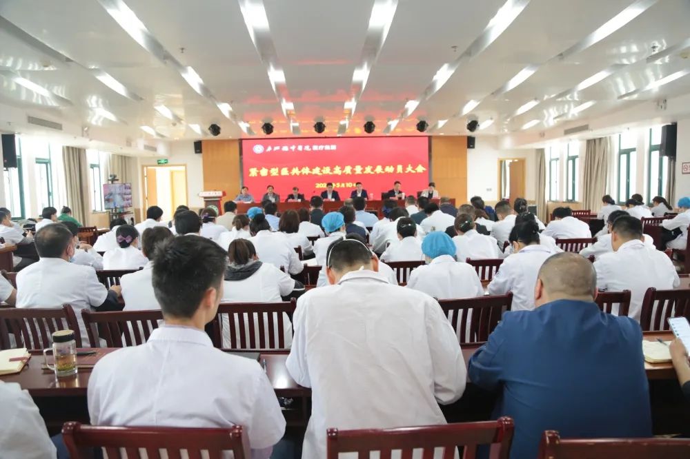 为加快推进紧密型医共体建设,全面提升医疗卫生服务水平,助力医疗集团高质量发展,5月10日下午,庐江县中医院医疗集团召开紧密型医共体建设高质量发展动员大会。会议采用视频会议方式,主会场设在县中医院,分会场设在集团各分院。