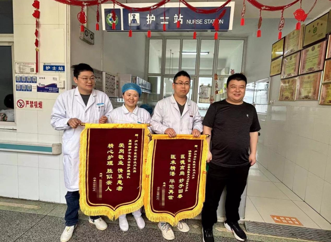 近日,家住合肥的张先生将两面印有“医德高尚妙手回春 医术精湛华佗在世”“爱岗敬业情系患者 精心护理胜似亲人”的锦旗送到了庐江县中医院肺病科·呼吸与危重症医学科主任洪香周、主治医师任春生及护士长夏娜娜的手中,感谢医护人员在他父亲住院期间的精心治疗和细心护理。