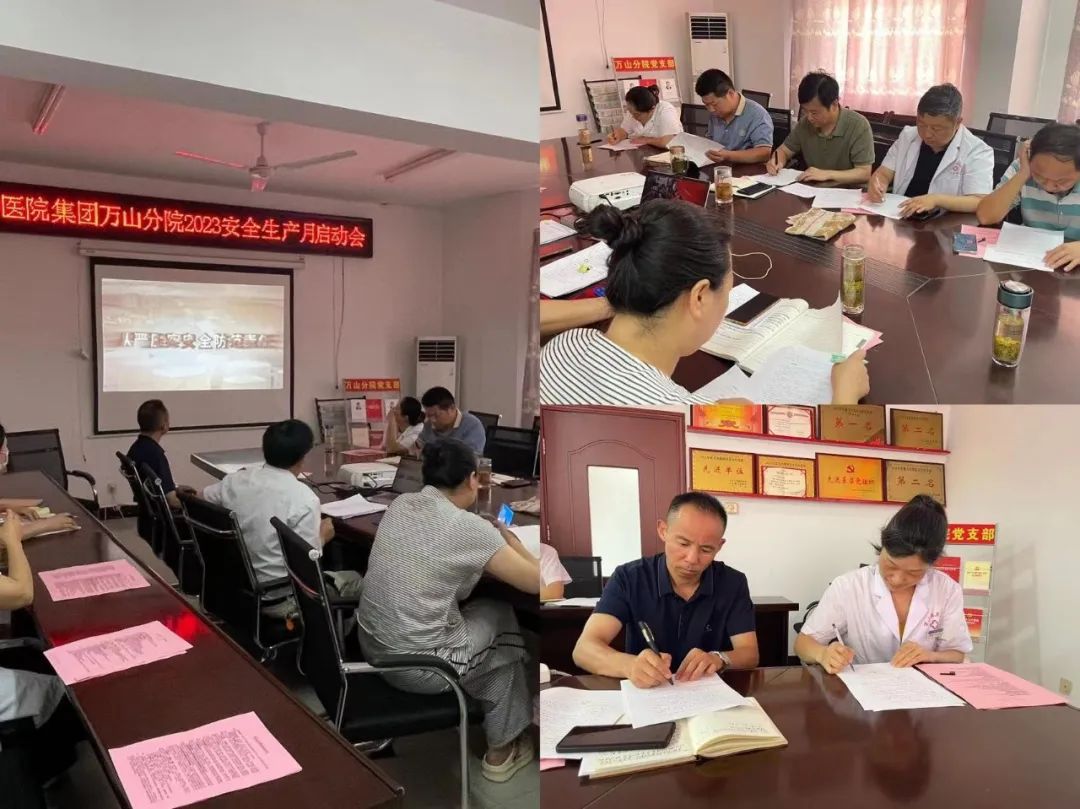 万山分院召开“安全生产月”活动动员会,开展“人人讲安全、个个会应急”、“应急管理应知应会”培训,组织参训人员进行安全知识测试,与科室负责人签订安全生产责任书,让“安全,没有过去和未来,只有现在”的意识入脑入心,强化“时时讲安全、处处讲安全、人人讲安全”思想,形成“安全生产月”系列活动的浓厚氛围。