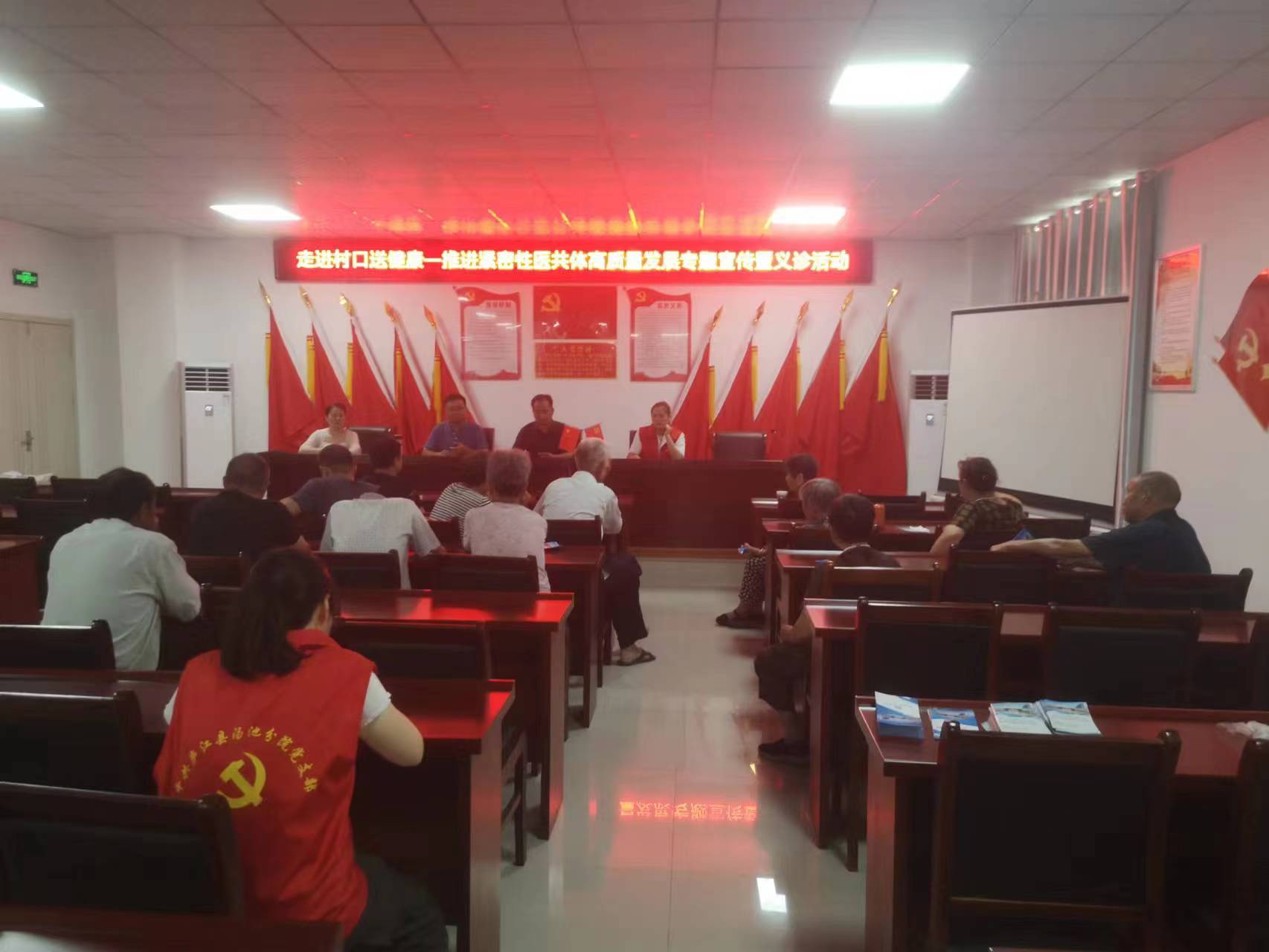 2023年7月13日,庐江县中医院医疗集团医护专家在汤池分院班子成员和党员陪同下,到大塘村开展“走进村口送健康”推进紧密型医共体高质量发展专题宣传暨义诊活动。