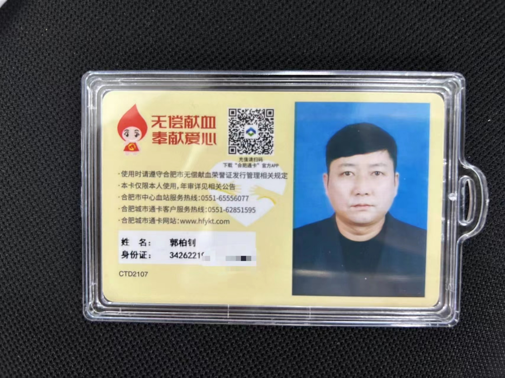 6月21日下午,庐江县中医院检验科医生郭柏钊领到了一张特别的卡——合肥市无偿献血荣誉证(爱心卡)。这是合肥市为了回馈无偿献血者的爱心奉献,向符合条件的无偿献血者发放的。