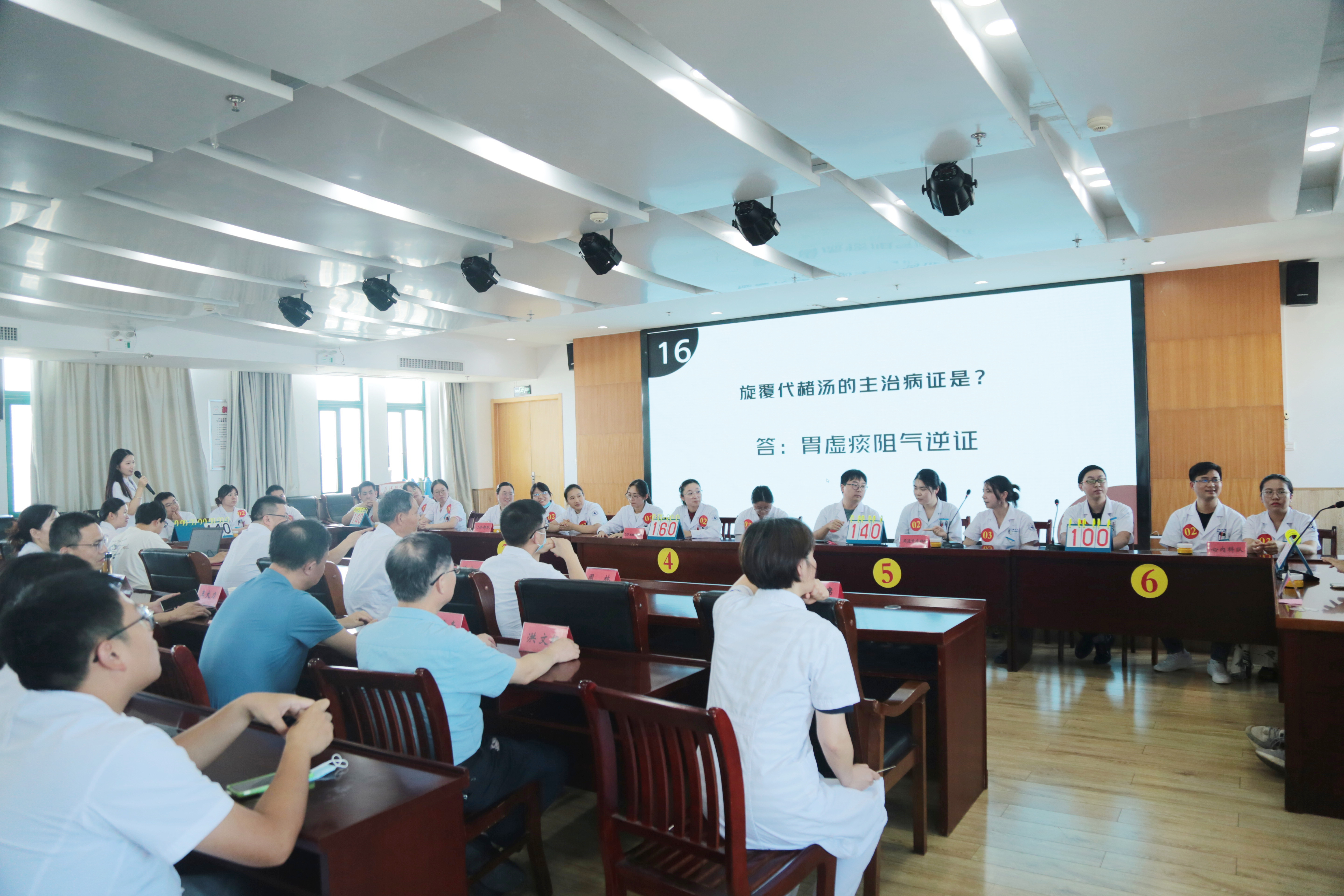 经过初赛的比拼,7支队伍共21名选手脱颖而出,进入复赛。8月2日下午,庐江县中医院医疗集团第一届方剂大赛复赛拉开帷幕。院名医堂中医专家许承建、大内科主任王寅、肿瘤二科主任周林等担任大赛评委。