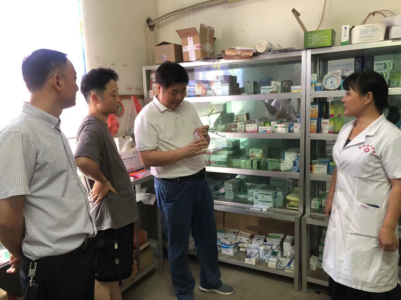 8月10日,董召斌带队先后到金牛镇尹岗村卫生室、山南村卫生室、古城社区卫生室、健康村卫生室、圩坝村卫生室等督查。