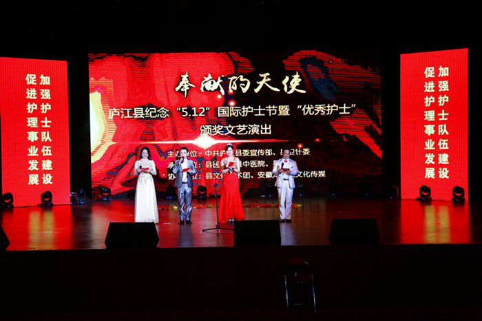 为纪念第105个“5.12”国际护士节,传承和弘扬南丁格尔无私奉献精神。5月12日晚,由县委宣传部、县卫计委举办的以“奉献的天使”为主题的表彰暨文艺晚会在庐江大剧院隆重上演。