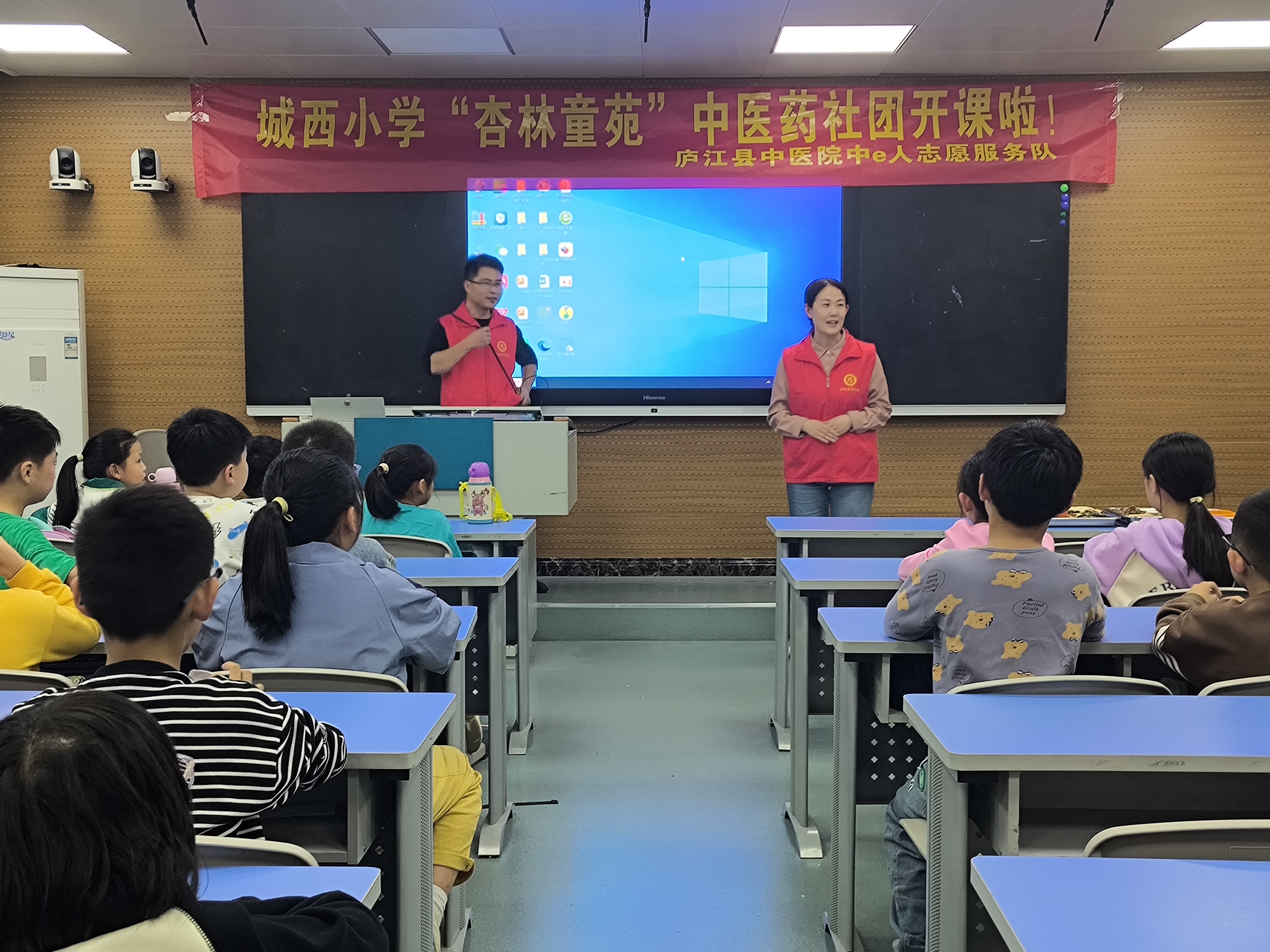 为推进中医药文化传承发展与传播,增强少年儿童对中医药知识的了解与认同,10月13日下午,庐江县中医院中e人志愿服务队走进城西小学开展“杏林童苑”中医药社团活动。