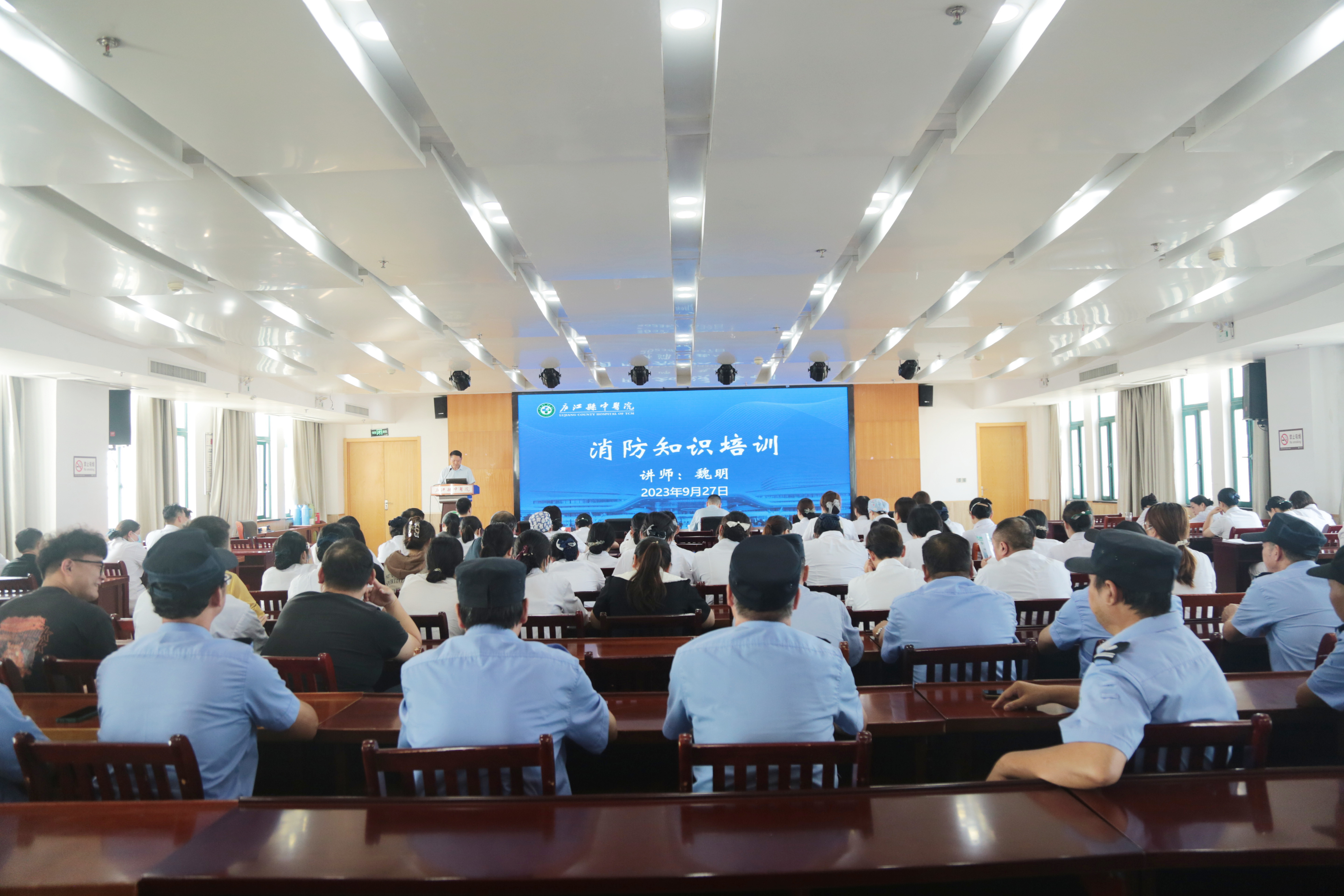 为切实做好“双会”“双节”期间医院各项安全生产工作,进一步普及消防基础知识,提升职工火灾应急处置能力,9月27日下午,庐江县中医院开展消防安全知识培训和演练,邀请庐江县消防救援大队魏明教官授课。院长王大力、副院长杨旭东、院中层干部及科室消防安全员等参加,会议由副院长杨旭东主持。