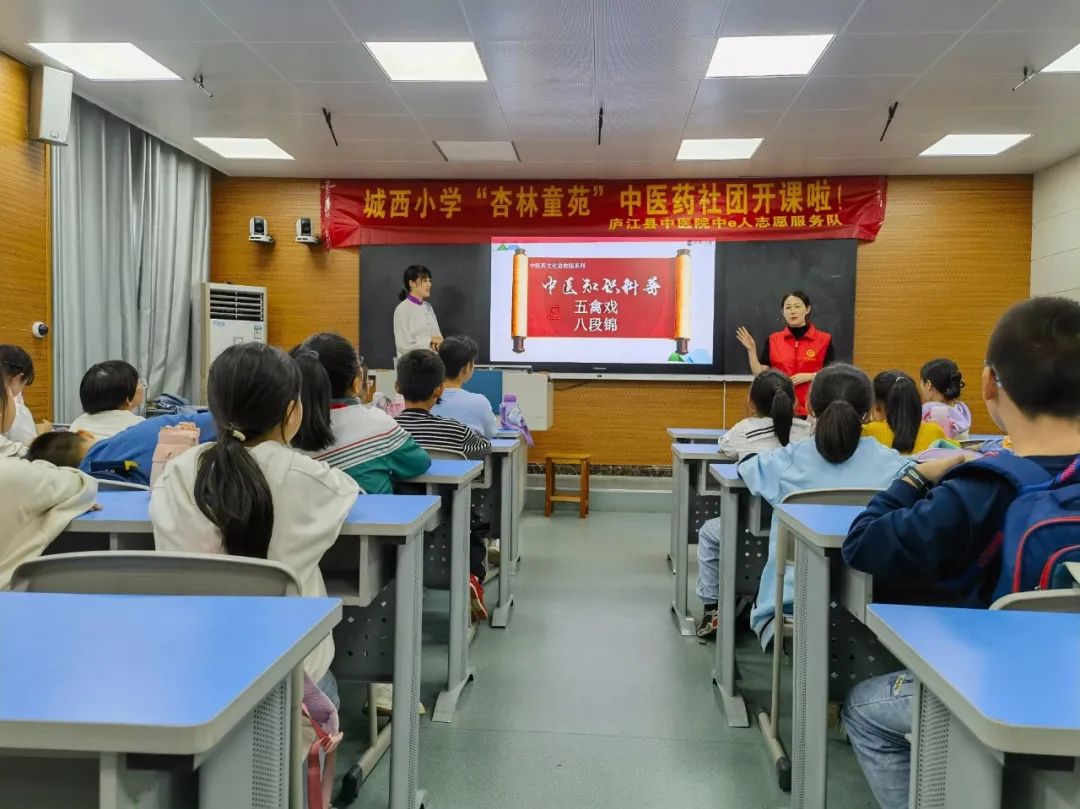 为大力弘扬中医药文化,进一步传承和推广中医养生功法,10月27日,庐江县中医院中e人志愿服务队走进城西小学开展第二期“杏林童苑”中医药社团活动。