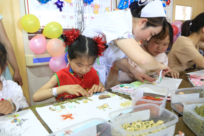 只见,中药贴画比赛现场,小朋友们个个变身神笔马良,用中药材描绘他们心中的童年,整个儿科病区充满了孩子们的欢声笑语,医护人员、家长和小朋友度过个快乐而意义非凡的节日。