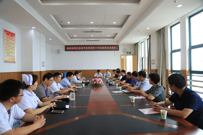 座谈会上,钱小清副院长对太和县中医院导专家行的到来表示热烈欢迎,并对我院基本情况做了简要介绍。王大力副院长详细说明了我院绩效管理发展历程及运行情况,与会双方展开热烈讨论,相互“取经”,汲取发展思路。会后,王朝亮行深入至临床、职能科室进行参观指导。