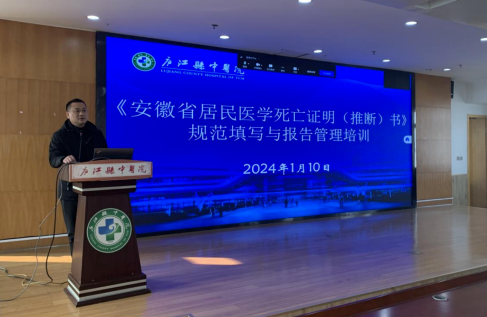 1月10日下午,我院邀请县疾控中心专家开展《安徽省居民医学死亡证明(推断)书》规范填写与报告管理培训。集团分院填写责任人、负责救治的执业医师、负责调查的执业(助理)医师及院临床医生等约70余人参加,开班仪式由分管院长章勇主持。