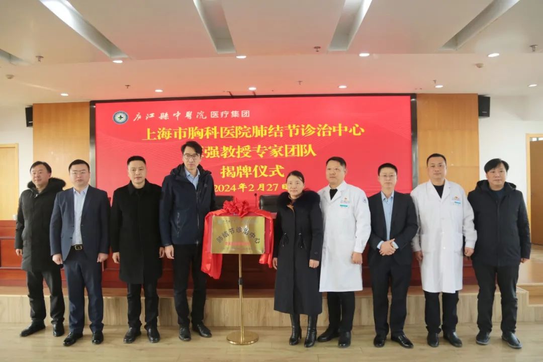 上海市胸科医院谭强教授与县委卫健工委专职副书记、县卫健委党委委员汪珍共同为“肺结节诊治中心”揭牌。