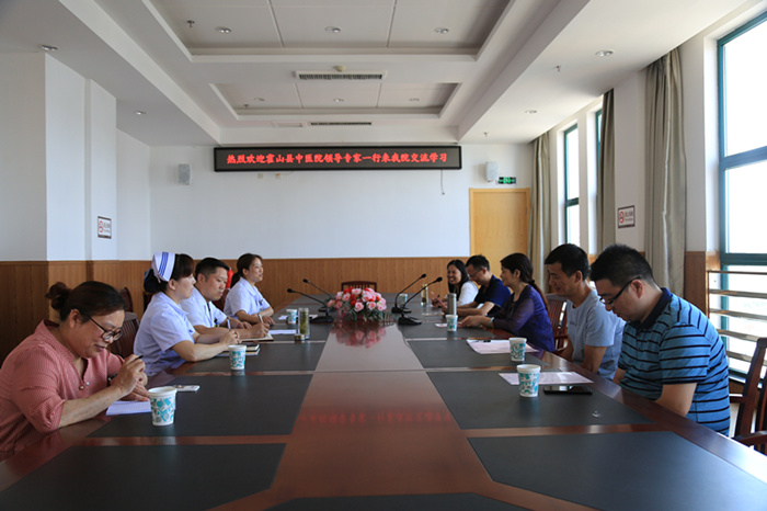 6月26日,霍山县中医院院长助理彭琛行来我院就医共体建设工作进行学习交流,副院长钱小清热情接待,医务科、护理部、财务科等科室负责人陪同参加。
