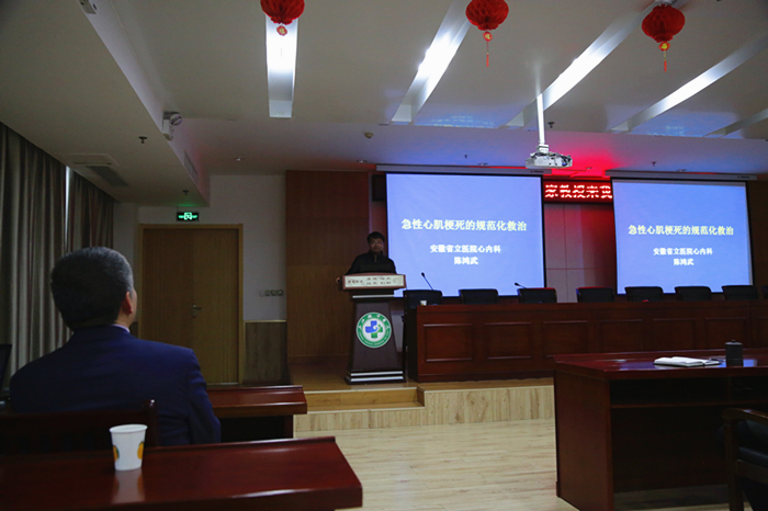 1月20日下午,我院邀请省立医院影像科主任吕维富教授、心血管内科主任陈鸿斌教授来我院进行学术专题讲座。讲座由许晓波院长主持,我院百多位临床医护人员到场聆听。 吕维富教授和陈鸿斌教授分别做了题为《介入放射学在临床中的应用》、《心肌梗死的规范化救治》的讲座。通过两位专家的授课,使我院的医护人员更全面的掌握了介入放射学的概况、前景以及临床使用情况,为提高医院介入放射学的诊治开展起到了积的促进作用。同时也对心肌梗死的规范化救治有了正确的认识。