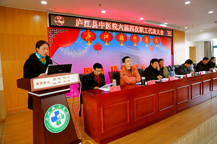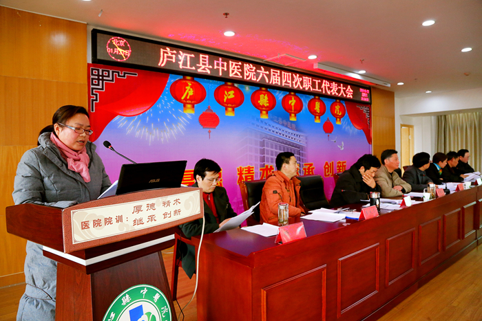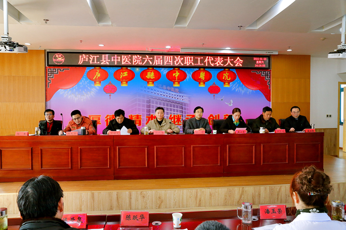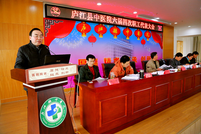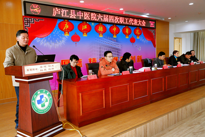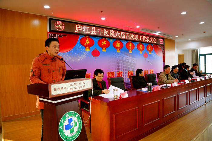 会议在庄严肃穆的国歌声中缓缓拉开帷幕,大会先后审议并通过了《院长工作报告》、《财务工作报告》、《工会工作报告》、《庐江县中医院关于医疗事故及纠纷处理的暂行规定》2016年修订草案、《关于庐江县中医院建立介入诊疗中心的意见》以及《庐江县中医院中级职称竞聘方案》2016年修订草案,对2015年度秀科室、秀中层干部、秀员工进行表彰。