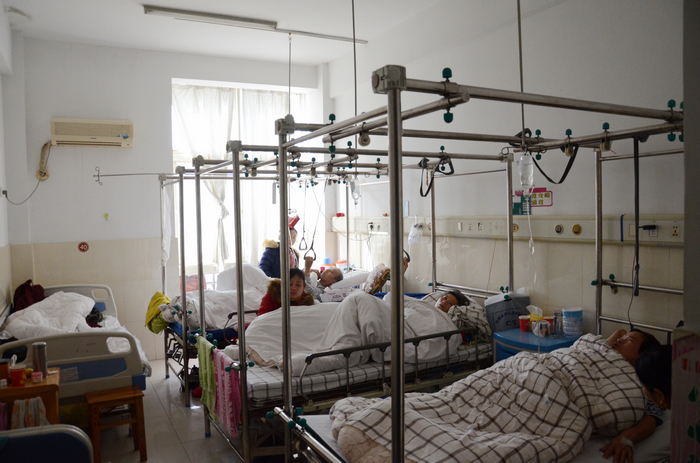 在门诊大厅,挂号、缴费的人员比起以前明显增多,化验室、CT室、取药处都是排满了人。进入住院部,看到很多病房都加了床位,连过道都是增设的床位,真是床难求。