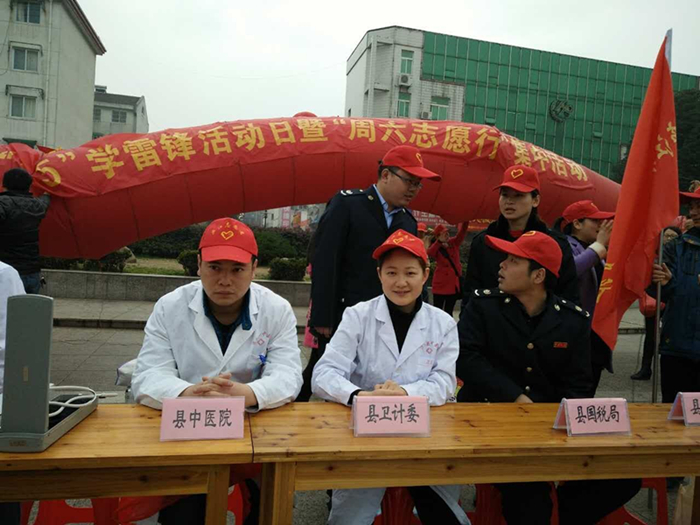 2016年3月4日上午 ,我院3名志愿者与县卫计委志愿者起赴县政府广场参加以“3.5学雷锋活动日暨周六志愿行”为主题的义诊活动。