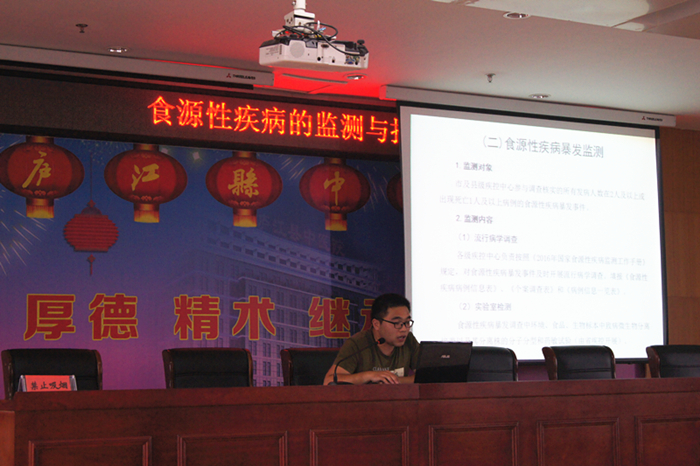 为全面做好食源性疾病、病毒性肝炎、艾滋病等重点传染病防控工作,我院科教科联合防保科邀请县疾控中心张丹、李军两位公共卫生学专家于 6月27日举办了2016年常见重点传染病防控知识和突发性应急事件规范处置培训班。