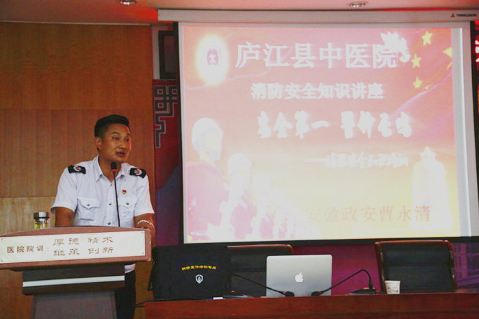 为强化医务人员消防安全意识,提高医院整体应急救援能力,8月22日下午3时,我院特邀合肥市消防培训专家曹教官为全院职工进行次消防安全知识培训暨消防灭火器材实地演练。院长许晓波以及导班子成员,各科室主任、护士长,院义务消防员以及2016、2017新进人员同参加此次消防安全培训与演练,会议由副院长王大力主持。