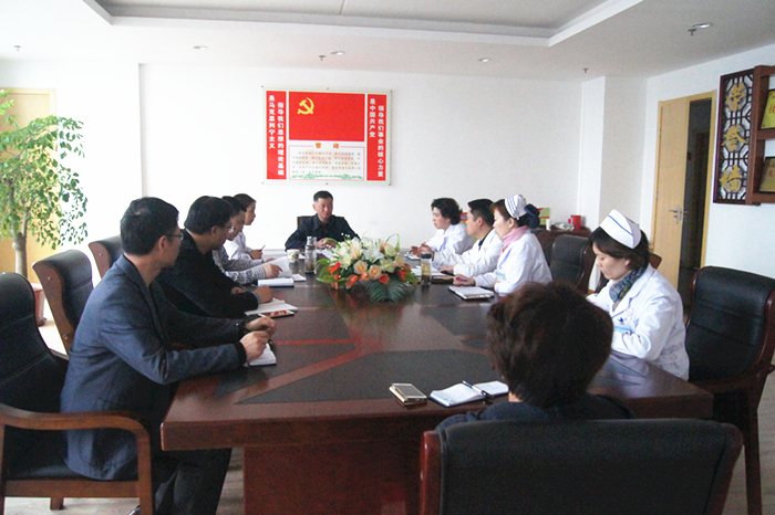 2016年4月11日上午10时, 庐江县中医院召开医共体工作推进会议。会议由许晓波院长主持,钱小清副院长、王大力副院长以及院办、医务科、护理部、财务科、医保办、质控办等相关科室的负责人参加了会议。 会上,许晓波院长详细解读了《庐江县2016年度医共体运行绩效考核工作方案》、《庐江县县域医共体任务、目标清单》等相关文件,明确相关工作人员职责及任务,为进步推进医共体工作做了详细部署。