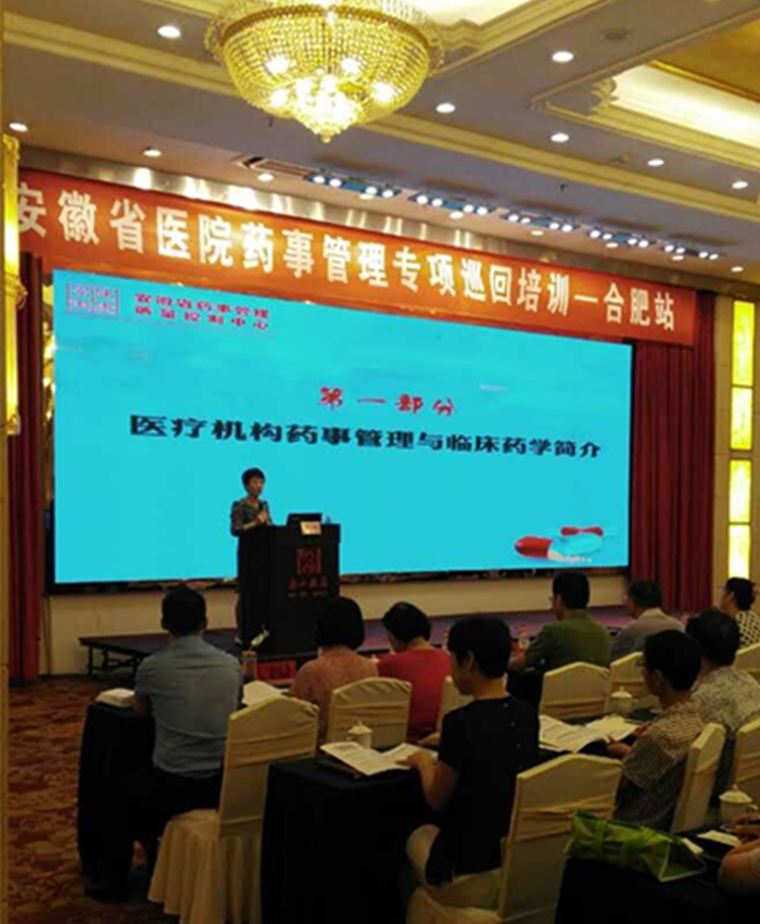 7月20日,我院药学部门行二人参加在合肥市举行的2016年安徽省医院药事管理专项巡讲培训班。本次培训的目的为加强安徽省各级医院,尤其是基层医院的药事管理工作,规范药品管理和临床用药行为,促进合理用药,不断提高医疗质量和医疗服务水平。 培训班上,我们聆听了专家对《静脉输液合理应用与管理》、《抗菌药物应用与管理》、《麻醉药品和精神药品管理》三个方面的宣讲。通过本次学习,为进步提高我院药事管理工作、药事服务水平起到了积的推动和促进作用。