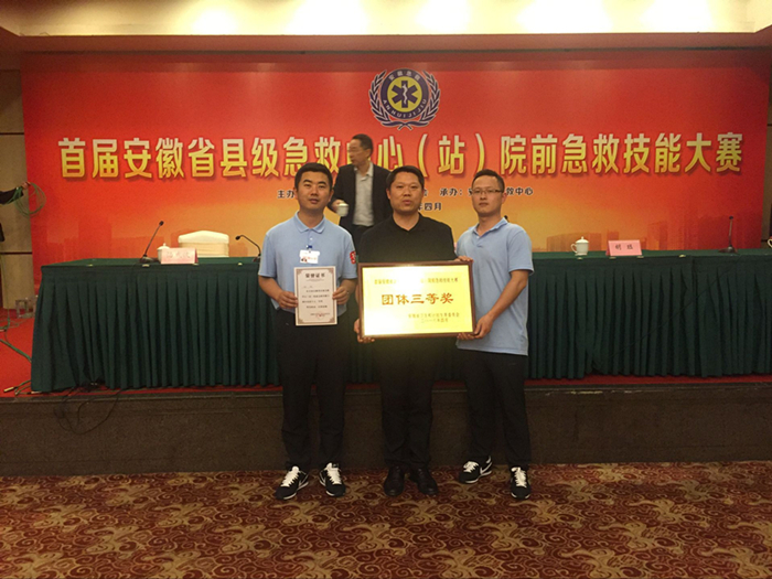 4月27-29日,由安徽省卫计委主办的“届安徽省县级急救中心(站)急救技能大赛”在合肥举行。本次参赛共有35家县级医院105人,我院代表队作为合肥市两所县级医院之参加了此次比赛。