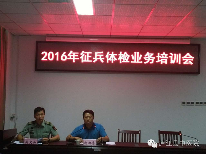 7月29日,我县召开2016年征兵体检业务培训会,会议由县人武部军事科吴文兵参谋主持,县卫计委党委副书记、纪委书记徐业松及相关体检单位负责人参加会议,我院分管院长钱小清率十名体检医务人员参加。这也标志着2016年我院征兵体检工作即将全面展开。