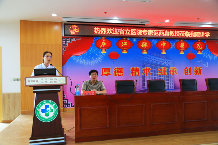 8月16日下午,我院邀请省立医院心血管内科专家范西真教授进行学术专题讲座。讲座由钱小清副院长主持,我院及部分乡镇卫生院二百多位临床医护人员到场聆听。