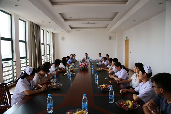 炙热的七月过去了,温暖的八月里,高考学子们收到了封封来自大学校园的通知书,为奖励我院职工子女金榜题名,8月19日下午,在院十楼会议室,院工会组织召开了职工子女金榜题名茶话会,参加会议的有院长许晓波,副院长钱小清、王大力,院工会主席钱业旺、副主席吴国际,办公室主任谈武,会议由钱业旺主席主持。