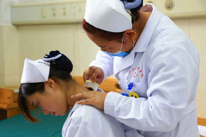 为了进步加强中医护理管理工作,突出中医特色护理,普及和规范中医护理技术操作活动, 近日,我院护理部组织对全院护士进行拔火罐、耳穴埋豆、艾条灸、穴位贴敷、中药涂药、穴位按摩、中医热熨、中药湿敷、中药熏洗、刮痧等十项中医护理技术操作考核。