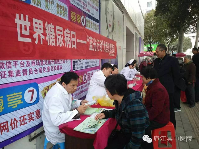 11月14日,在又年“糖尿病日”来临之际,庐江县中医院派出医护专家队伍,走进乡镇、走进社区,开展“蓝光行动”大型义诊活动。