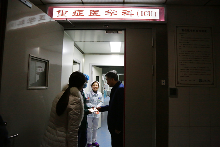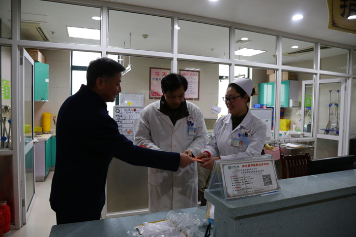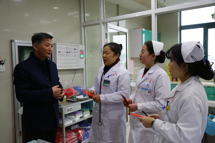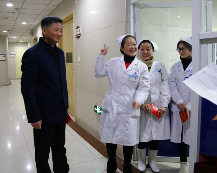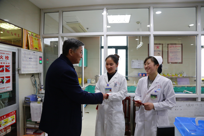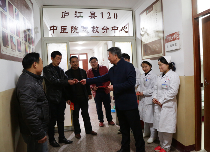 红红的灯笼高高挂,辞旧的鞭炮处处声。在这举家团圆的时刻,大年三十的庐江县中医院却灯火通明。医院的部分医务人员依然奋战在救死扶伤的战线上,履行着医者的神圣职责。 大年三十晚,院党委书记、院长许晓波带班子成员及部分职能科室负责人起走进医院的每个病区,为除夕夜晚坚守岗位的值班人员、安保人员和奋战在线的医护人员送去新春的问候,感谢他们节日期间的奉献。