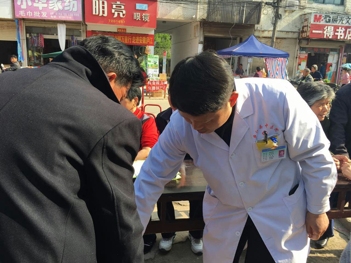 4月13日,县中医院医疗专家队到该院县域医共体成员单位盛桥镇中心卫生院开展对口帮扶义诊、查房、讲座等工作。