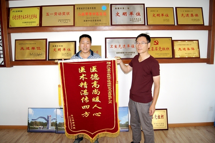 6月18日上午9点,来自庐江县汤池镇的徐来胜将三面锦旗送到骨伤二科、内科和院办公室,以表达庐江县中医院医护人员对自己精心治疗和护理的感激之情。