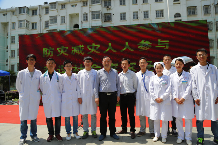 为贯彻《合肥市防震减灾条例》,纪念汶川地震9周年,5月9日,我院选派院前急救人员参加合肥市暨庐江县防震减灾演练活动。